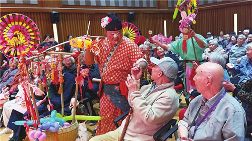 午后,工作人员推着装满重阳糕的推车穿梭楼栋,“李爷爷,重阳节快乐!”甜糯可口的糕点送到每位长者手中,甜意直抵心间。随后的文艺演出更将氛围推向高潮,杂技的惊险、歌舞的欢快、戏曲的韵味让长者们看得聚精会神。“有吃有玩还有健康服务,住这儿太幸福了!”一位长者的感慨道出了大家的心声。