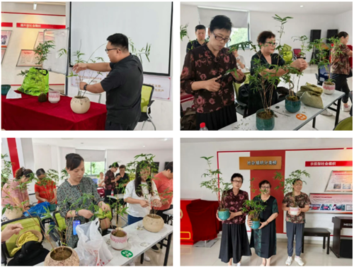 在互动环节,大家热情高涨,踊跃参与。围绕盆景的造型技巧、日常养护等问题,老人们与老师进行了深入交流,现场气氛温馨而融洽。亲手培土、植栽、造型……在实践过程中,大家不仅加深了对盆景艺术的理解,更在一土一木的营造中,体会到传统技艺的精妙与匠心。
