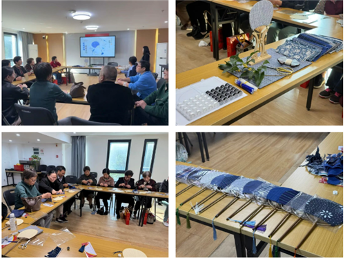 活动伊始,来自音品堂的专业指导老师系统介绍了非遗土布“扎花纺线”的细腻工艺、“植物染”的自然韵律以及“传统纹样织造”的匠心巧思。在扇面制作体验环节,十余位手作爱好者在老师的悉心指导下,亲手进行土布的挑选、裁剪与拼接。一针一线中,大家相互交流配色心得,分享制作技巧,现场气氛热烈。最终,一块块纹理独特的土布,在大家的巧手下化身为一把把充满巧思的扇面。
