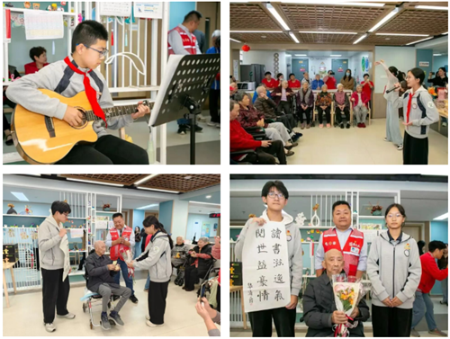 白洋湾街道领秀金品社区新时代文明实践站联合叶圣陶中学与共建单位申浪科技有限公司,走进悦邻护理院开展慰问表演活动。