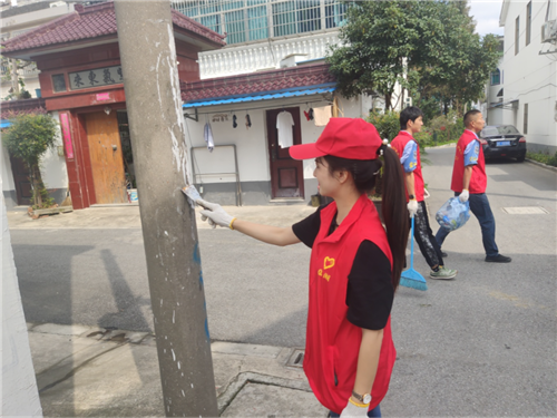 7月5日清晨,牛桥村里一番热闹景象。“这小广告就像狗皮膏药,铲掉之后看着都舒服多了!”路过的村民罗阿姨忍不住驻足称赞。只见志愿者黄大姐从工具包中拿出喷壶,喷洒润湿电线杆上的小广告,铲子随后跟上,动作一气呵成。大家背着工具包,一路走去,捡拾垃圾、铲除小广告、粉刷乱涂乱画……一起守护“净美”家园。